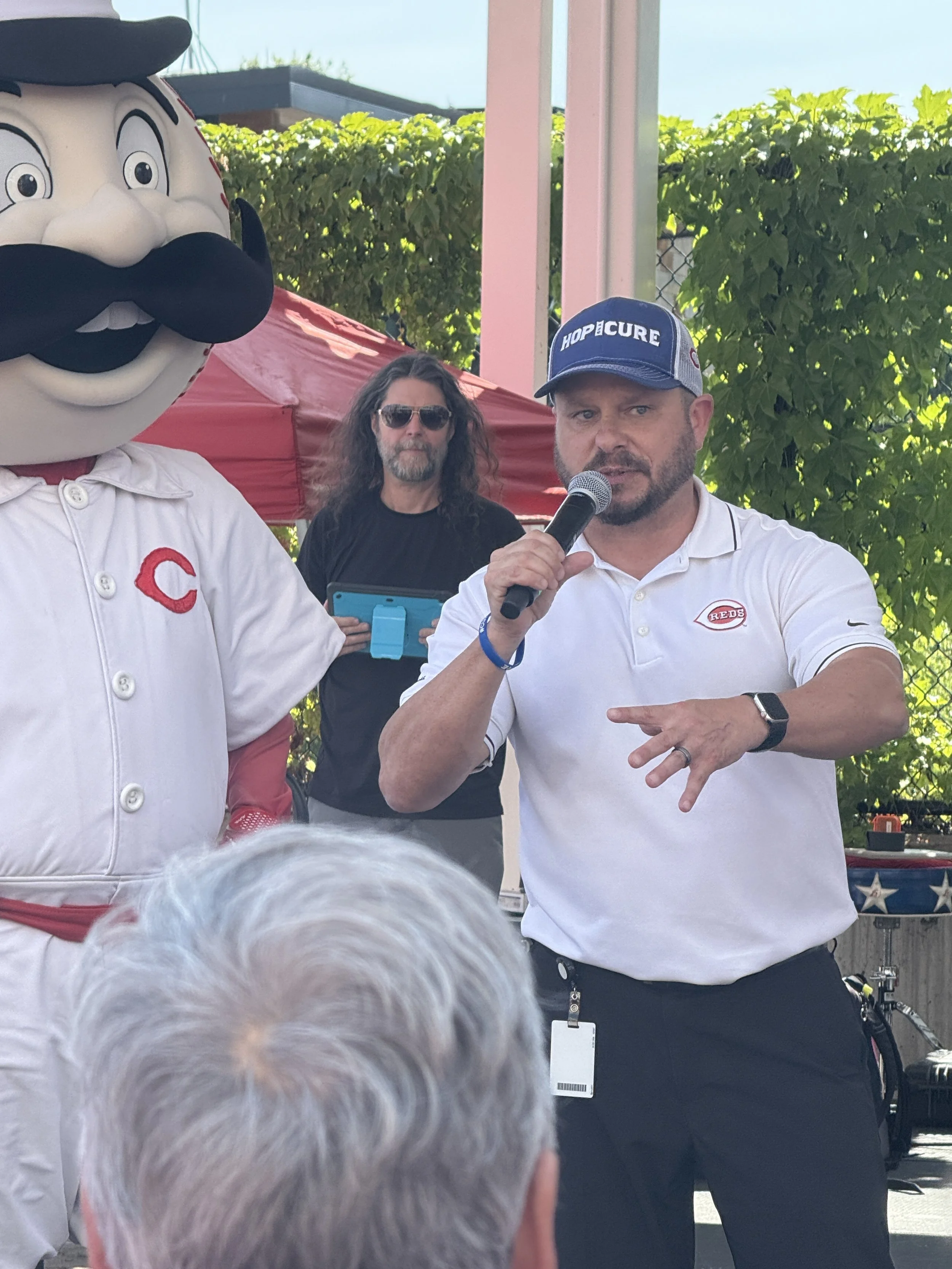 On June 2, the Triple Play Team participated in Lou Gehrig’s Day at Great American Ballpark for the second consecutive year. John Rieder and the Reds Community have been instrumental in raising awareness and support for ALS. This year, we had the honor of being joined by John Driskell Hopkins from the Zac Brown Band, who treated us to music and a Q&A session. Hops, who is living with ALS, initiated the Hop on a Cure campaign. It was an afternoon filled with fun, raising awareness, and honoring those pALS currently fighting ALS as well as those we have lost. Mark your calendars for Tuesday, June 2, 2026 for next year’s ALS Awareness Game at the Great American Ballpark.