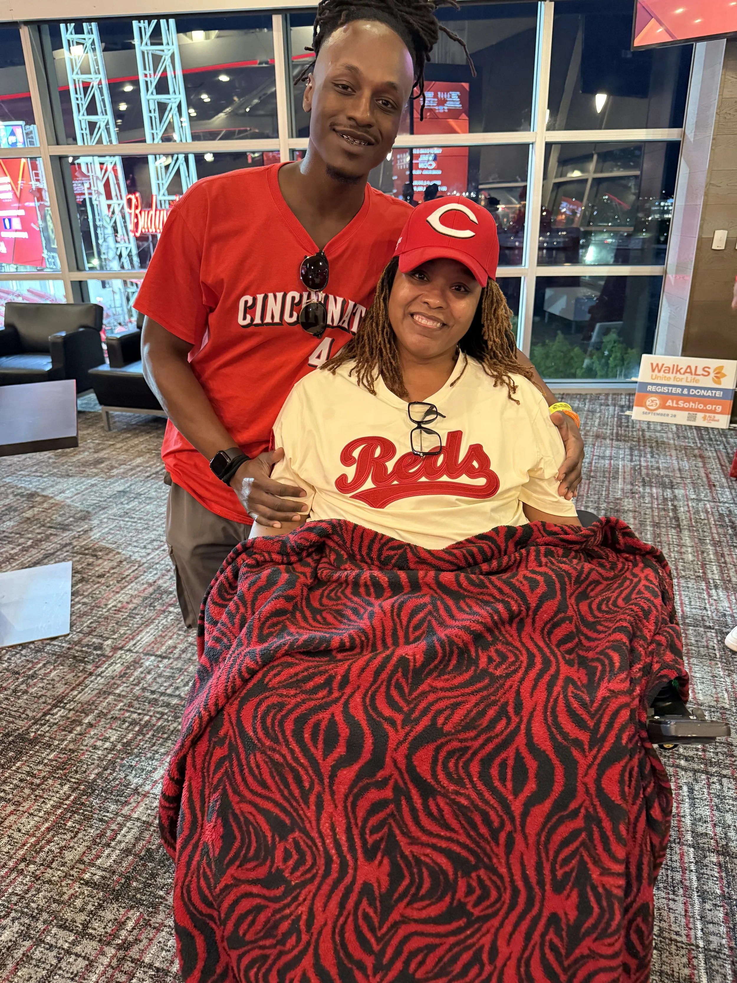 Sherry is lovingly supported by her mother Beverly, her son Savion, her boyfriend, and her siblings. Sherry is unique in that she has received support from our ALS Triple Team. Always Lifting Spirits provided Sherry with a lift chair, Chair Force 1 Foundation provided a wheelchair accessible van (which the family calls the 12th disciple), and Operation Ramp It Up built a ramp into her home. Sherry will be honored as the First Responder at the June 2, 2025 Cincinnati Reds Game.
