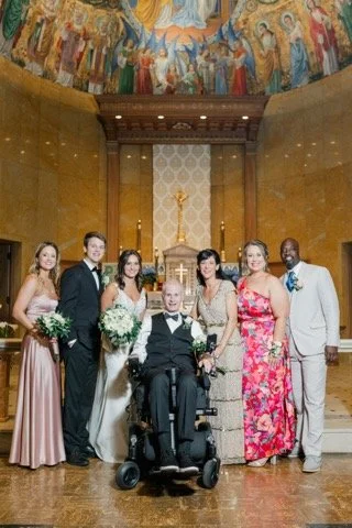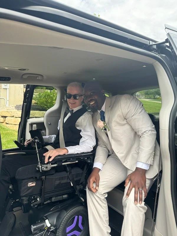 Despite the challenges, Paul found “peace” with the diagnosis, as it strengthened his faith. Each night, Christy would pray with him before bed, often using holy water brought back by a friend from Ireland to bless him. In April 2023, their son became engaged, choosing an April 2024 wedding date. The excitement of wedding planning was uplifting, although it coincided with Paul’s decline. The Tepes needed a fully motorized wheelchair and a van for transportation. In December 2023, Paul received his wheelchair and communication device, and they were connected with a local group that provided them with their very first wheelchair-accessible van, thanks to ChairForce1 Foundation!